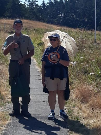 Long time KOPL member and retiring Maintence Chair, Sandy Evans, being honored for a lifetime of Service award with Washington State Parks. Washington State Park director Steve Sabine, presenting the honor.