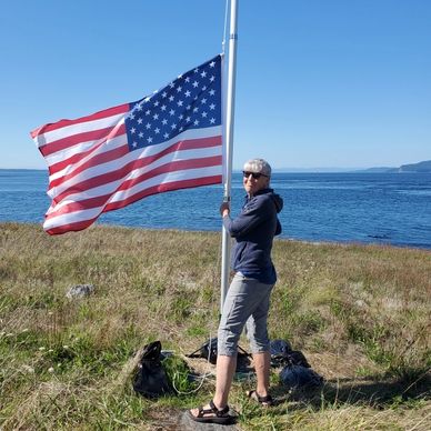 The US flag flies again on Patos Island. First time in 50 years! Thank you to KOPL and partner with BLM. Docents can now raise the flag as part of opening the Lighthouse – Lowering it at sunset.